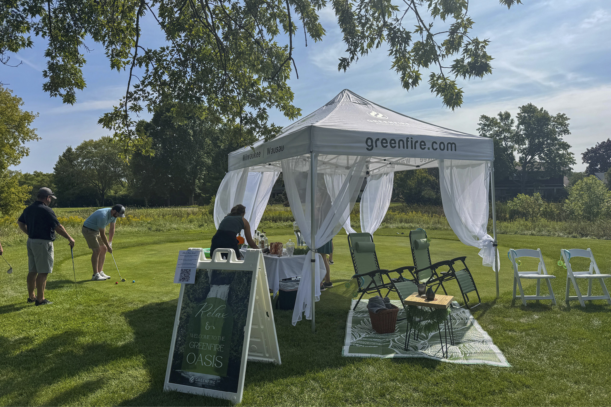 At the 2025 Commercial Association of REALTORS Wisconsin (CARW) Golf Outing, Greenfire transformed its sponsored hole at River Club of Mequon into a relaxing oasis.