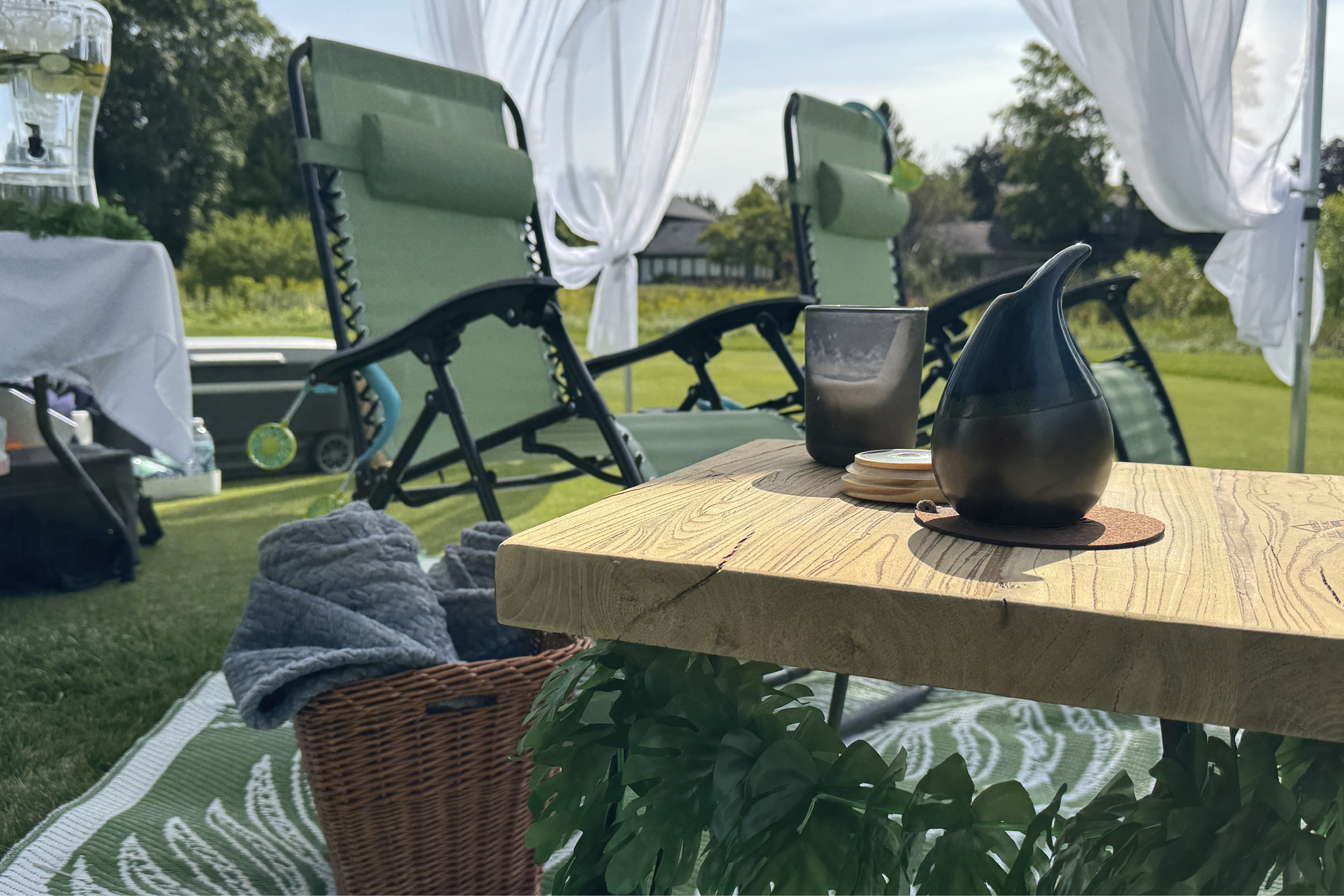 Golfers stopped by to recharge with cool beverages, play games, and take a load off. The Oasis featured a chipping contest, “guess-the-tees” jar for a chance to win a set of green lounge chairs, and refreshing drinks served in Greenfire’s 15-Year Anniversary copper mugs. Players could lounge and cool off with neck fans, incense and candles set the scene, and Yacht Rock Radio kept the vibes mellow.